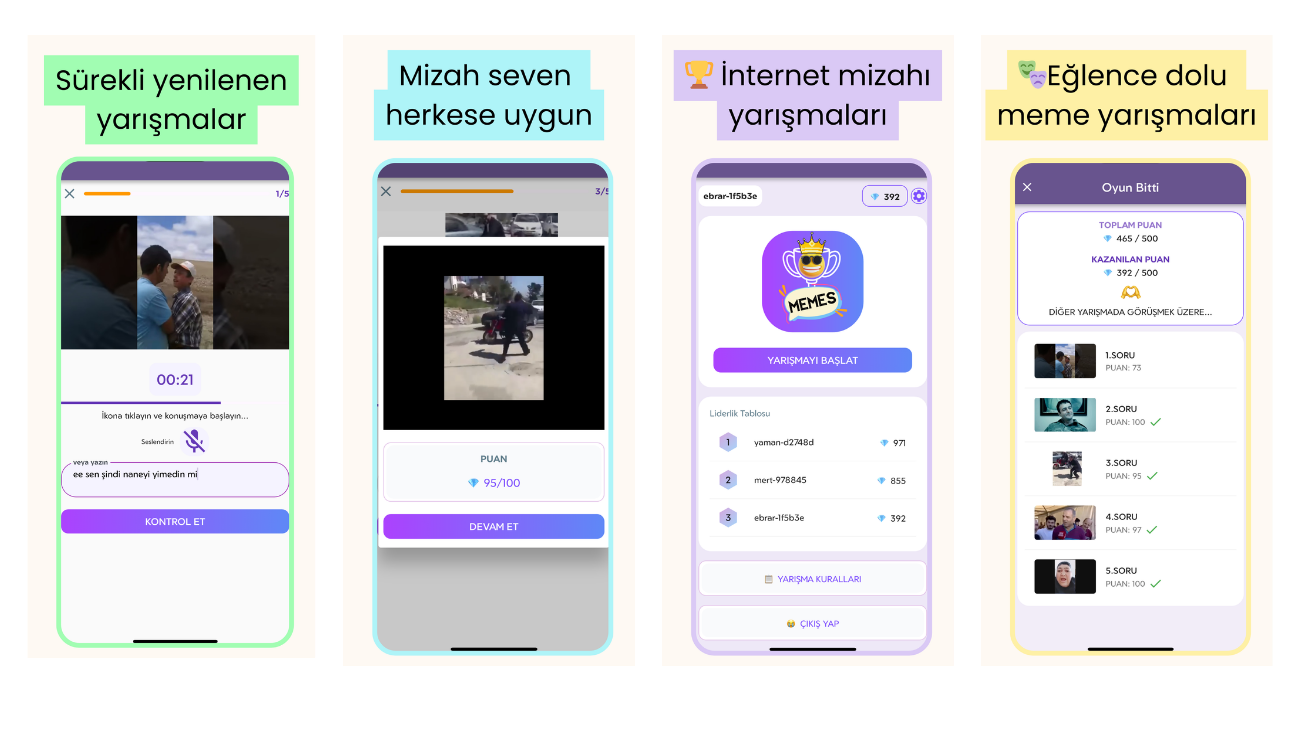 En komik memeleri cevapla, yarışmalara katıl ve zirveye çık! Eğlence dolu yarışmalar seni bekliyor. Puan topla ve liderlik tablosunda yüksel.